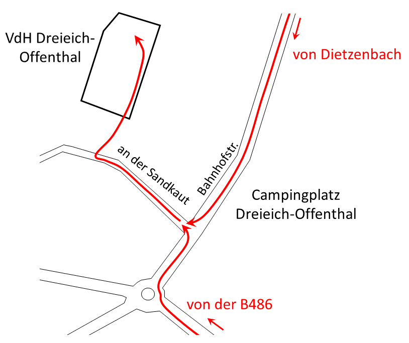 Aus Dietzenbach kommend gleich nach dem Campinggelände vor dem Kreisel rechts …